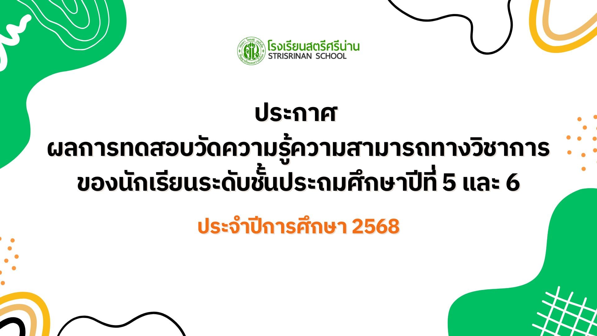 ประกาศ เรื่อง ผลการทดสอบวัดความรู้ความสามารถทางวิชาการ ของนักเรียนระดับชั้นประถมศึกษาปีที่ 5 และ 6 ประจำปีการศึกษา 2568