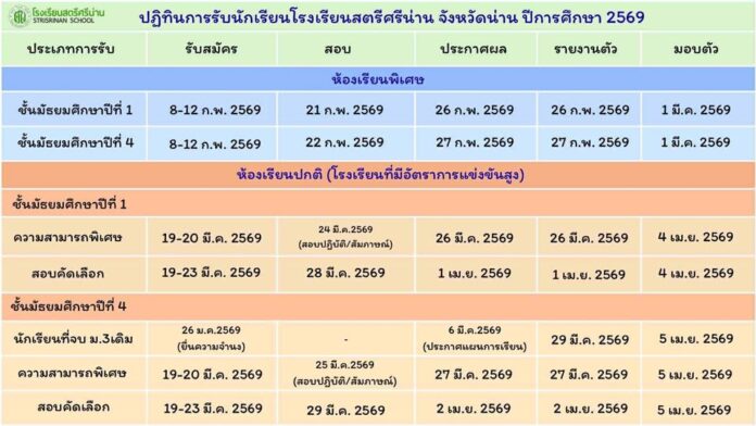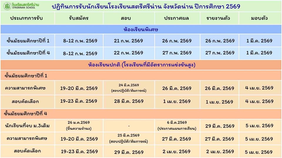 ประชาสัมพันธ์ ประชาสัมพันธ์ ปฏิทินการรับนักเรียน ระดับชั้นมัธยมศึกษาปีที่ 1 และระดับชั้นมัธยมศึกษาปีที่ 4 ปีการศึกษา 2569 By Admin - 8 December 2025 ประชาสัมพันธ์ ปฏิทินการรับนักเรียน ระดับชั้นมัธยมศึกษาปีที่ 1 และระดับชั้นมัธยมศึกษาปีที่ 4 ปีการศึกษา 2569