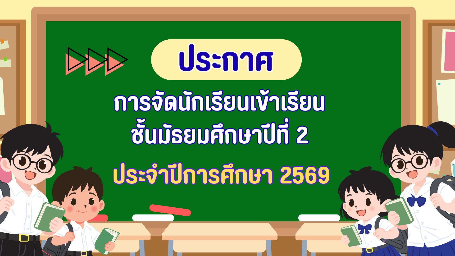 การจัดนักเรียนเข้าชั้นเรียน ระดับชั้นมัธยมศึกษาปีที่ 2 ปีการศึกษา 2569