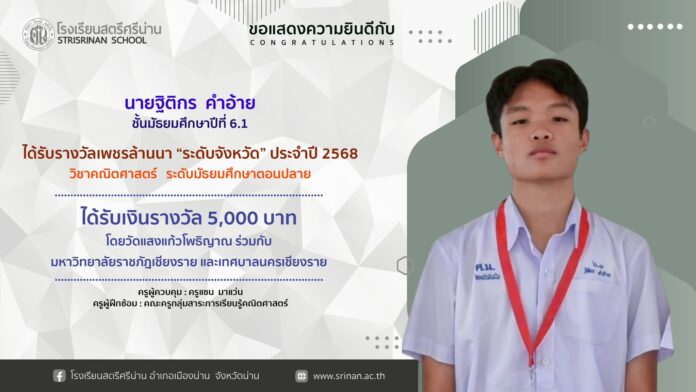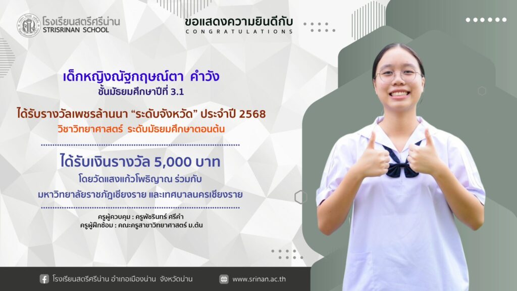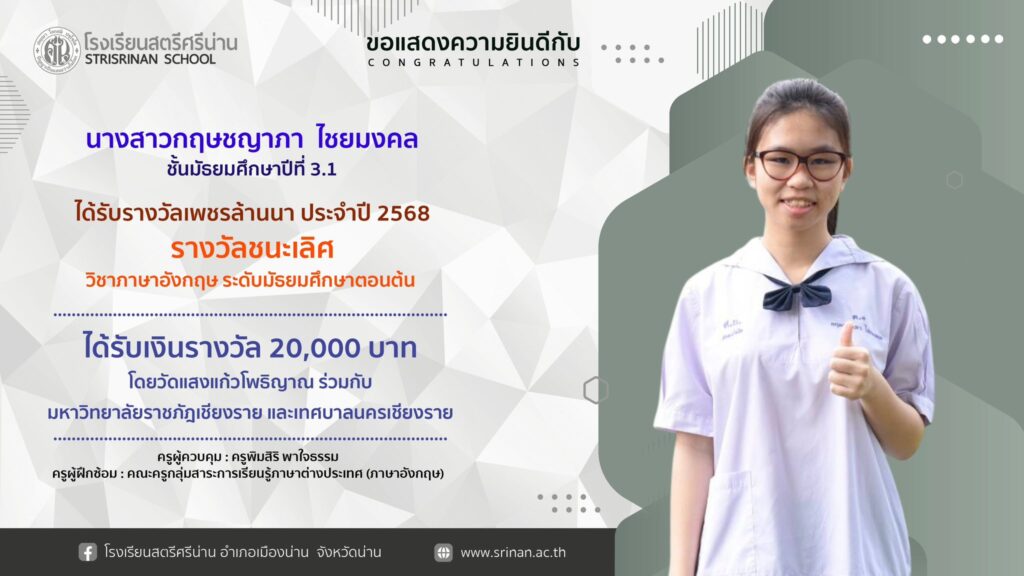 ลานคนดี เวทีคนเก่ง ขอแสดงความยินดีกับนักเรียนที่ได้รับรางวัล “เพชรล้านนา” ประจำปี 2568 By Admin - 26 November 2025 ขอแสดงความยินดีกับนักเรียนที่ได้รับรางวัล “เพชรล้านนา” ประจำปี 2568