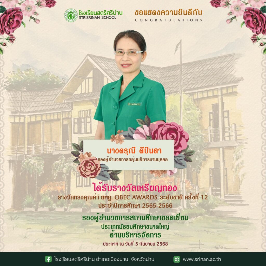ลานคนดี เวทีคนเก่ง ขอแสดงความยินดีกับคณะผู้บริหารสถานศึกษา ที่ได้รางวัลทรงคุณค่า สพฐ. OBEC AWARDS ระลับชาติ ครั้งที่ 12 ประจำปีการศึกษา 2565-2566 By Admin - 8 September 2025 ขอแสดงความยินดีกับคณะผู้บริหารสถานศึกษา ที่ได้รางวัลทรงคุณค่า สพฐ. OBEC AWARDS ระลับชาติ ครั้งที่ 12 ประจำปีการศึกษา 2565-2566