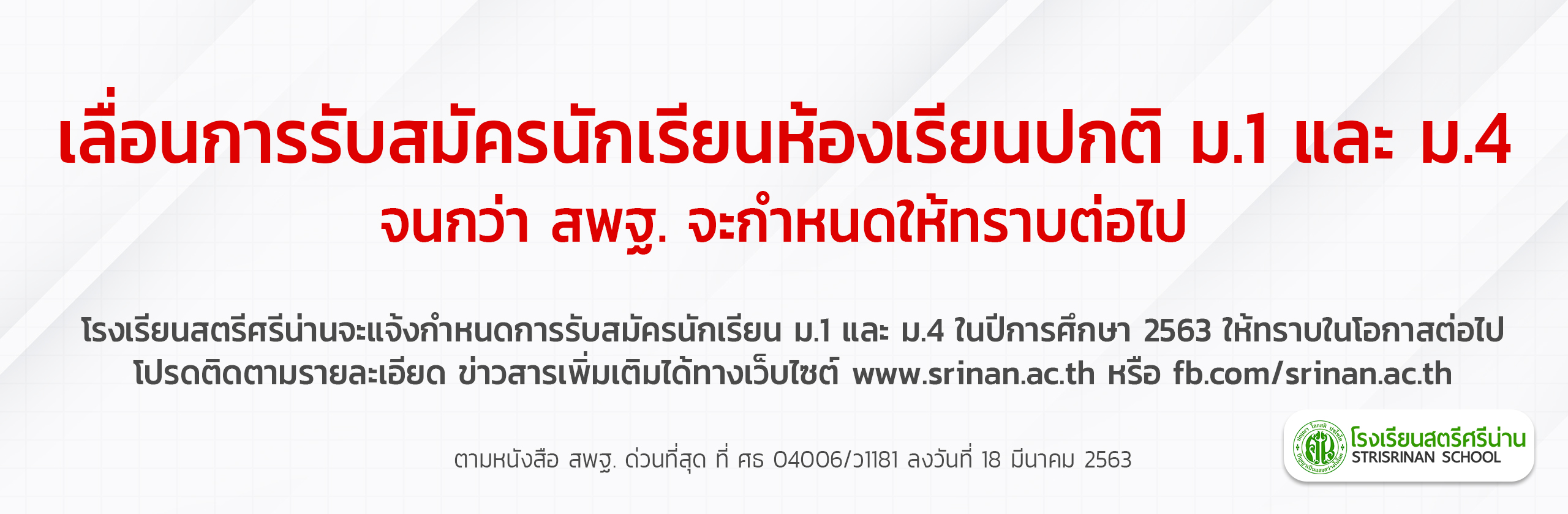 ประกาศ เรื่อง ประกาศผลการสอบคัดเลือกนักเรียนเข้าเรียนห้องเรียนพิเศษวิทยาศาสตร์ คณิตศาสตร์ เทคโนโลยีและสิ่งแวดล้อม (SMTE) ห้องเรียนพิเศษวิชาการ และห้องเรียนพิเศษภาษาอังกฤษแบบเข้มข้น (IEP) ชั้นมัธยมศึกษาปีที่ 4 ปีการศึกษา 2569